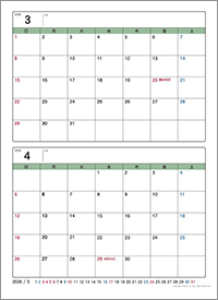・卓上カレンダー2ヶ月分を一枚に |